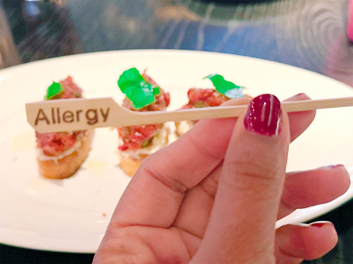 The thing we appreciated most about our experience there was that the chef included a small, wooden ‘Allergy’ paddle in our son’s dish to alert the server, acknowledge that this dish was prepared safely and to prevent any mix-ups with other dishes.