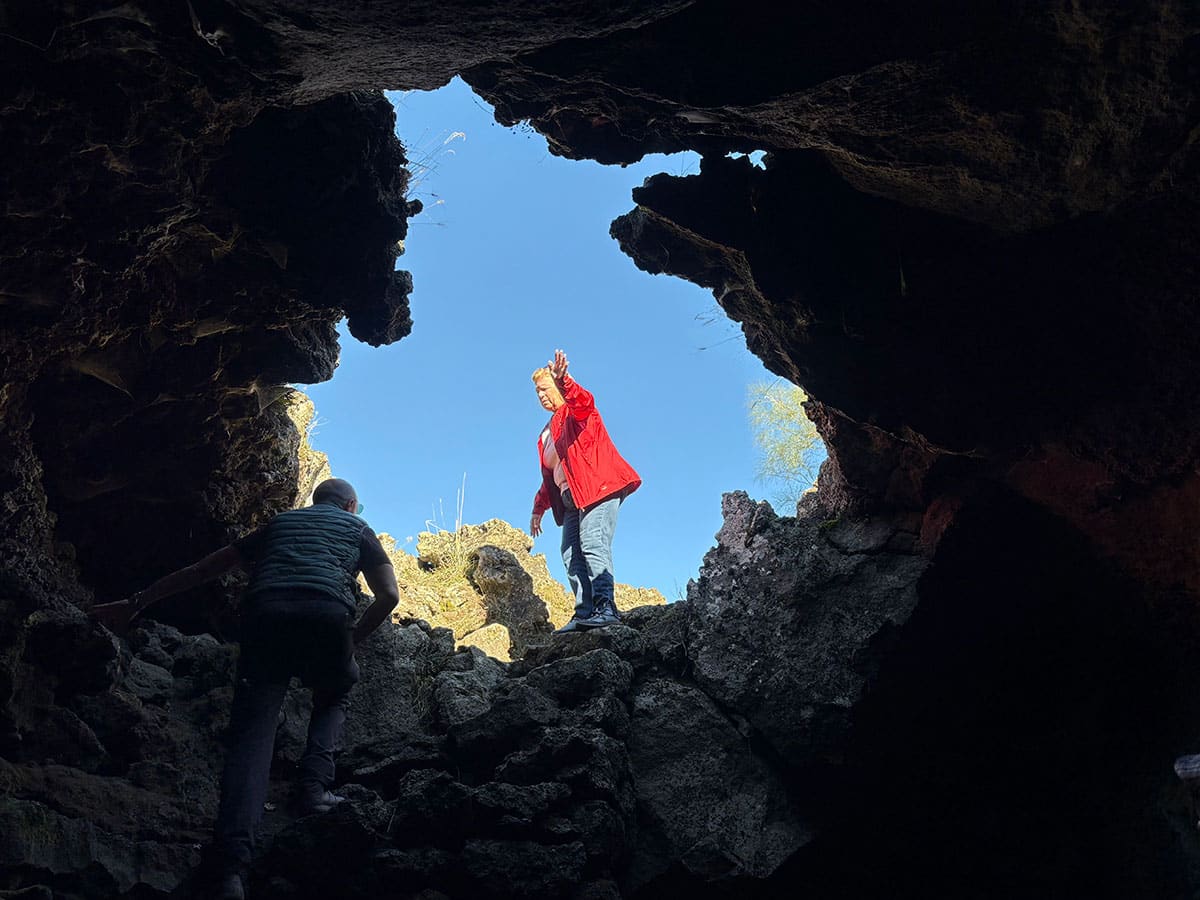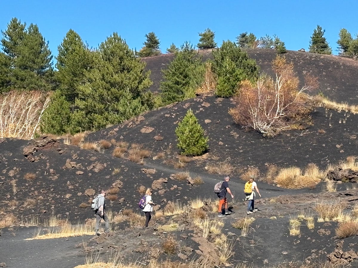 A drive through various climatic zones brought us to a lava field on the peak, which we crossed on foot to climb into an underground cave carved from lava flows. It was visceral proof of Etna’s power to sculpt the landscape.