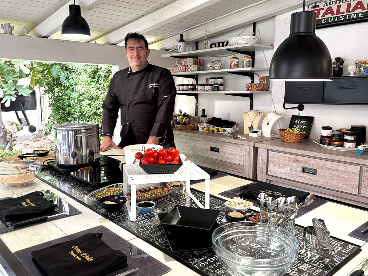 The bruschetta was just a part of a four-course meal I helped prepare during the Domus Kitchen cooking class that took place in the chef’s inviting open-air kitchen. Filled with laughter, banter, and fascinating insights from Chef Antonio (“the best shrimp flavor is in the head”), this hands-on cooking class featured local ingredients, traditional Sicilian recipes, and the warm hospitality of the chef’s own family. After preparing our meal with four fellow students, we all sat down to feast on the fruits of our labor.