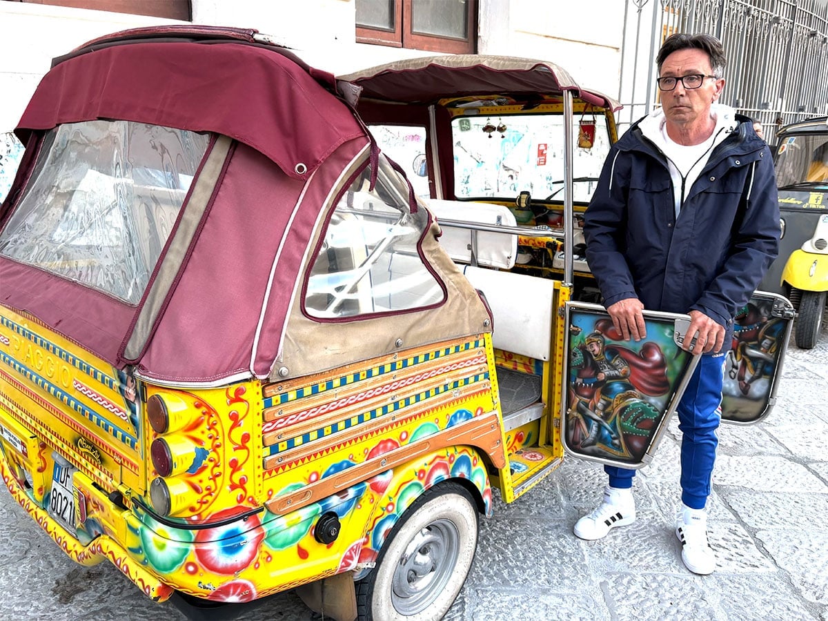 Each day was packed with memorable immersive experiences. In Sicily’s capital of Palermo, Perillo arranged for a guided tuk-tuk tour of the city. As we careened around the traffic-clogged streets, passing one grand historic building after another — the Teatro Politeama Garibaldi, the Teatro Massimo di Palermo, and the Palermo Cathedral — I learned that Palermo boasts more than 200 churches, many showcasing the unique Arab-Norman architecture characteristic of the city. “Historically, building shutters were either brown for the poorer people or green for the wealthier,” our guide, Francesca, pointed out.
