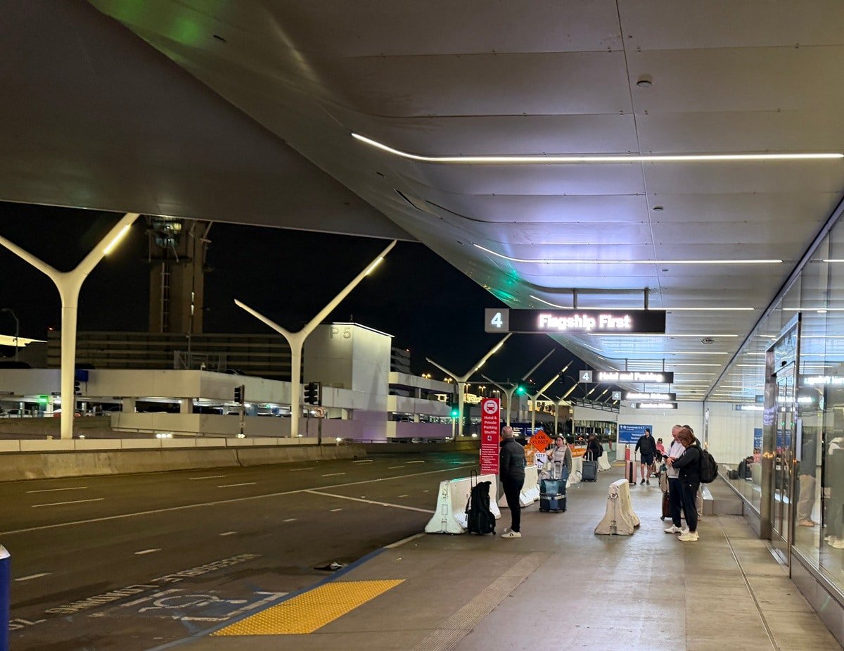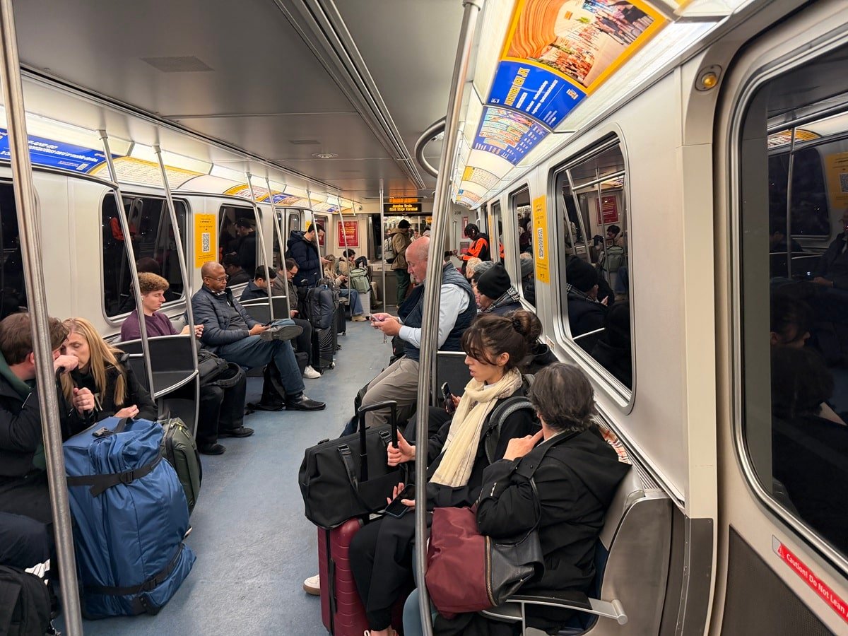 I made the rookie mistake of hopping on the first car of the AirTrain, which was packed, but realized the doors weren’t closing immediately and moved to the next car with a third of the crowd.