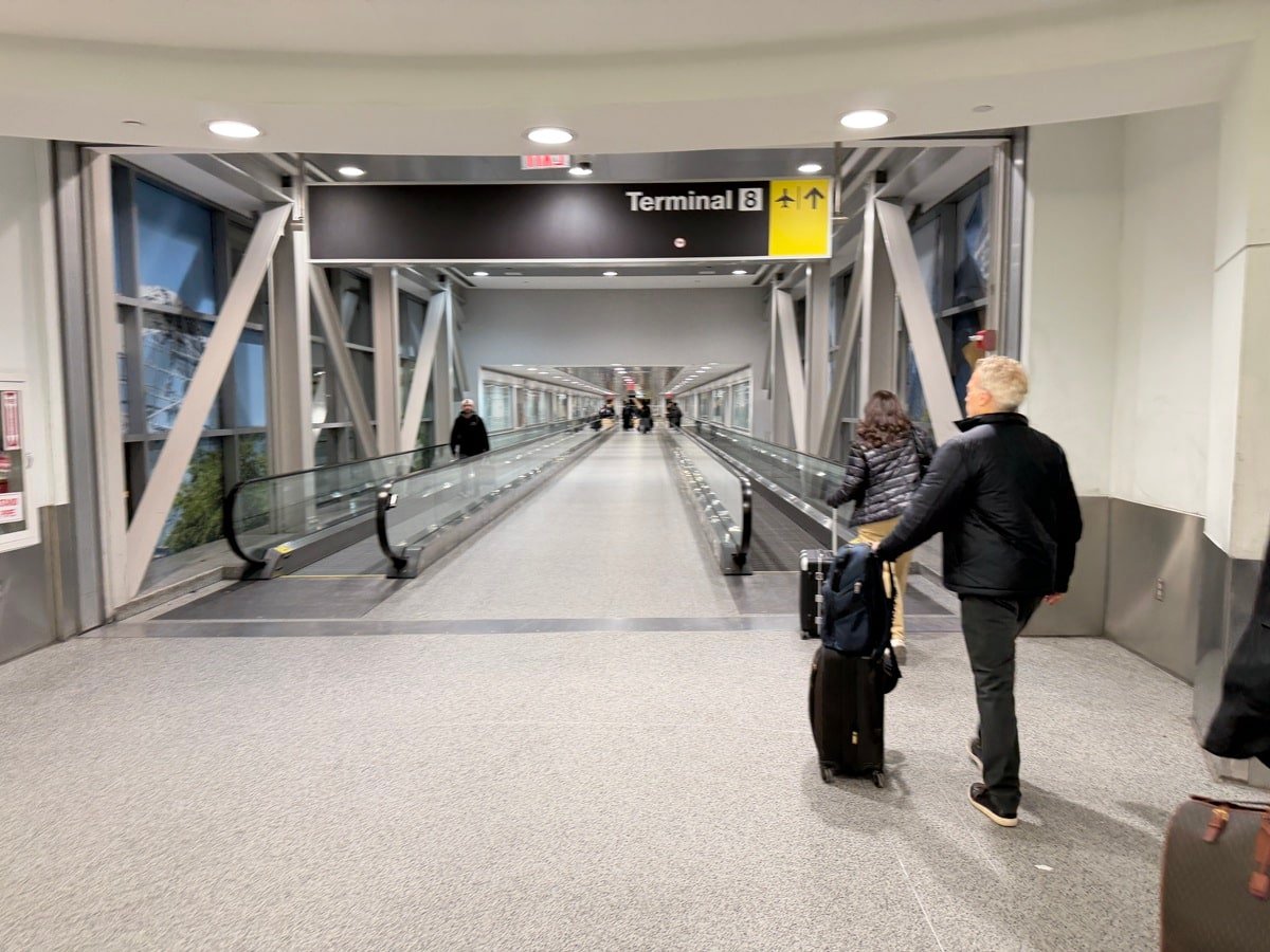 The ride to Terminal 8 took about 15 minutes, followed by some walking up and down escalators.