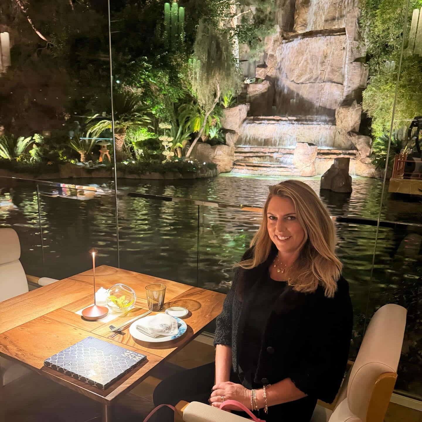The Waldorf’s serenity had me geared up for the next solo culinary romp, at the Wynn Las Vegas, for an artful dining experience at Mizumi, which easily turned into one of the top ten meals of my life. I know that statement is so overplayed, but my night at this unexpected dining destination, in view of a 90-foot waterfall, felt like being transported out of the dusty desert into a Japanese teak room with garden.