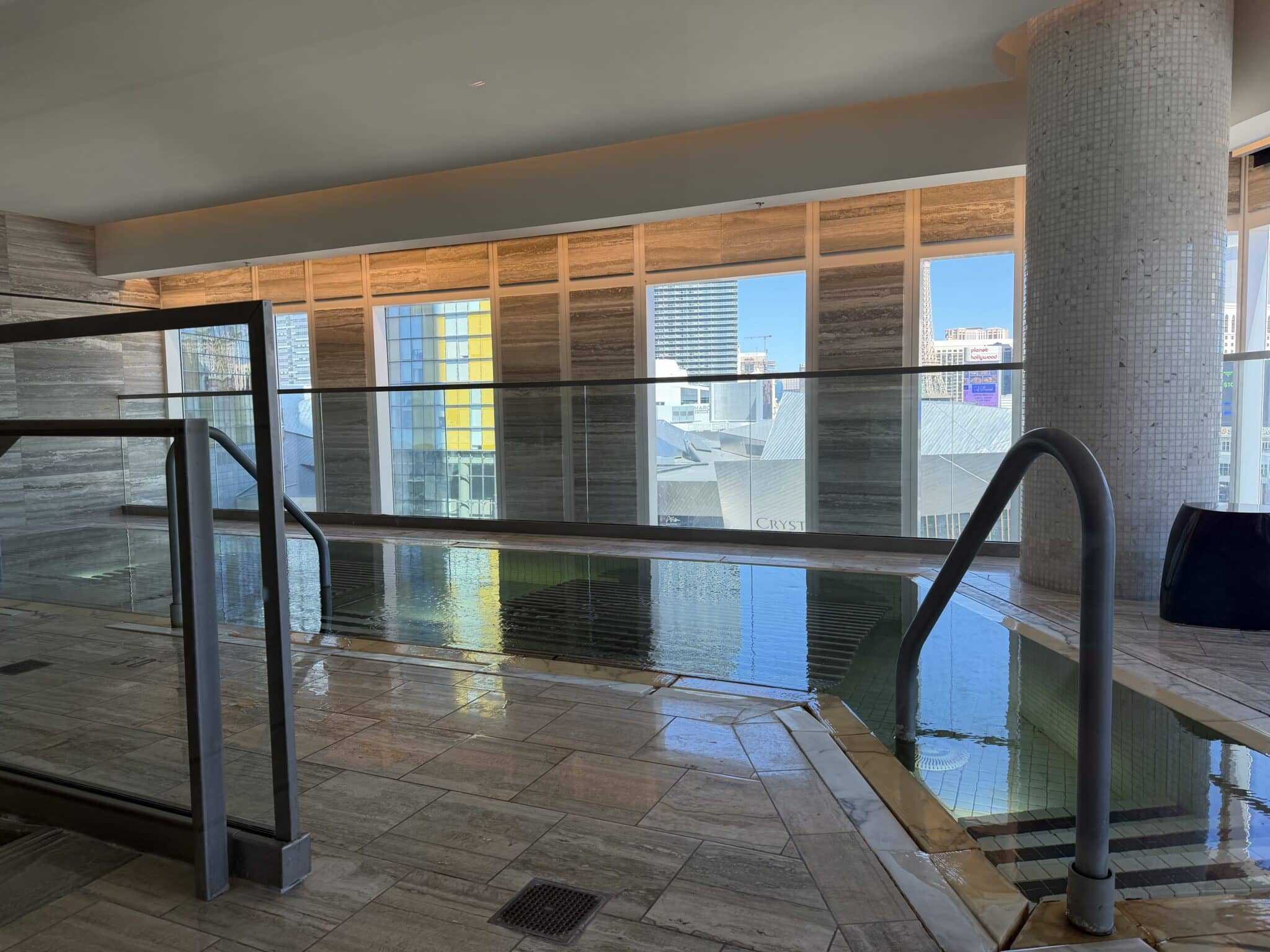 After a nighttime salt soak bubble bath, I woke up the next day ready for the Waldorf’s high-rise spa. This super serene light-filled spa impressed with sauna, steam, bubbly chair spa jacuzzi jets, and an Experience Shower, where a push of a button offered varying pressures and temperatures from jets all over the walls with settings like Arctic Blast or Rainforest Spritz. The spa’s numerous relaxing areas are designed for privacy and rest, while taking in the Vegas views.