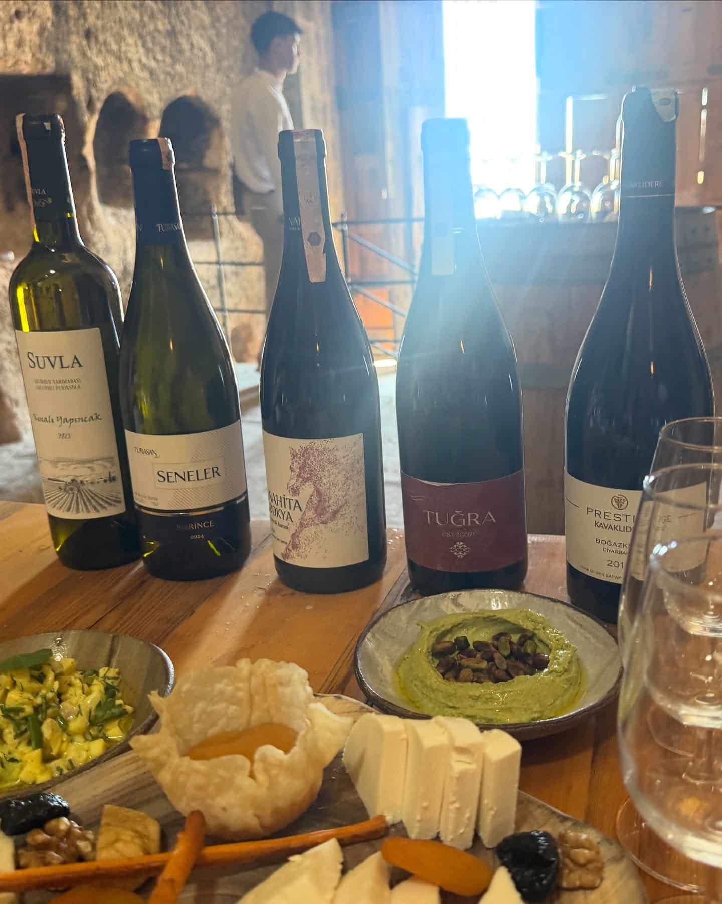Monstrous ancient doors open to the outside world, for those who need more air, as a sommelier excites tastes buds with the world’s oldest viticulture. Guests are guided through their collection of local and international vintages, and are instructed on the best pairing bites with each varietal. Local Cappadocian varietals are exceptional – like Narince and Emir, produced from two different wine regions 20 km from the hotel, as well as Argos’s house white Nahita Dokya, and a 2023 dry red Kalecik Karasi from Kocabağ vineyard. Along the hillsides and around Argos, you can see vineyards clinging to the volcanic soils.