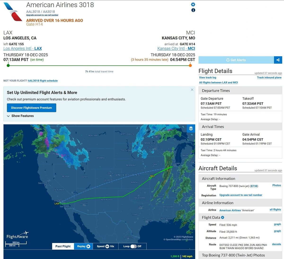 When he made the announcement, the cabin went eerily quiet as passengers were trying to comprehend what that meant in terms of their connections, meetings, pickups or they were getting to work like I was. BTW: Kansas City (MCI) is 403 miles from Chicago, so flight time was about an hour, which is more than enough time to get Plan B into place.