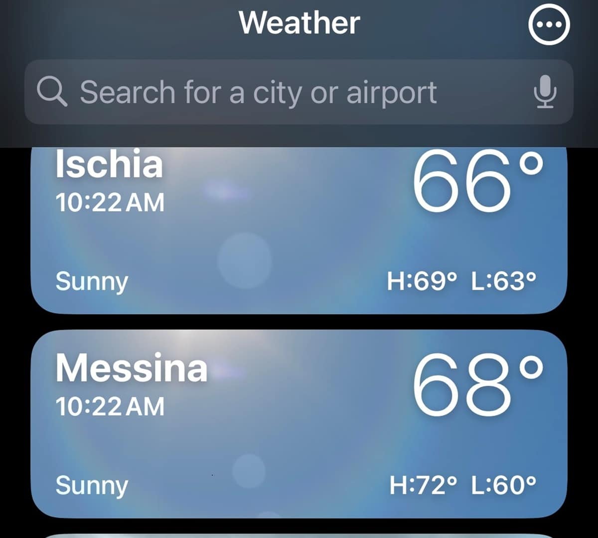 It helps you stay in sync with time zones back home. I use the Weather app since I load all of my destinations because it not only shows the temperatures but the current time. I keep L.A. second from the top so I know the time at home, where I am (that’s at the top) and where I’m going. Above is a example from last summer’s epic trip.