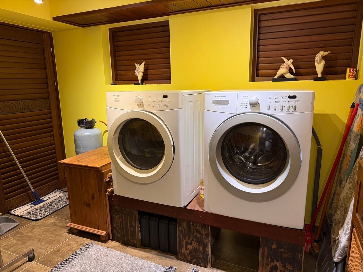 Having a washing machine and dryer was another plus. Just note that you need to turn the gas (pictured above on the left) on to get heat in both the washing machine and dryer, which was news to me. The dryer also had two handles on the inside. I only saw one, which was a costly mistake in terms of time.