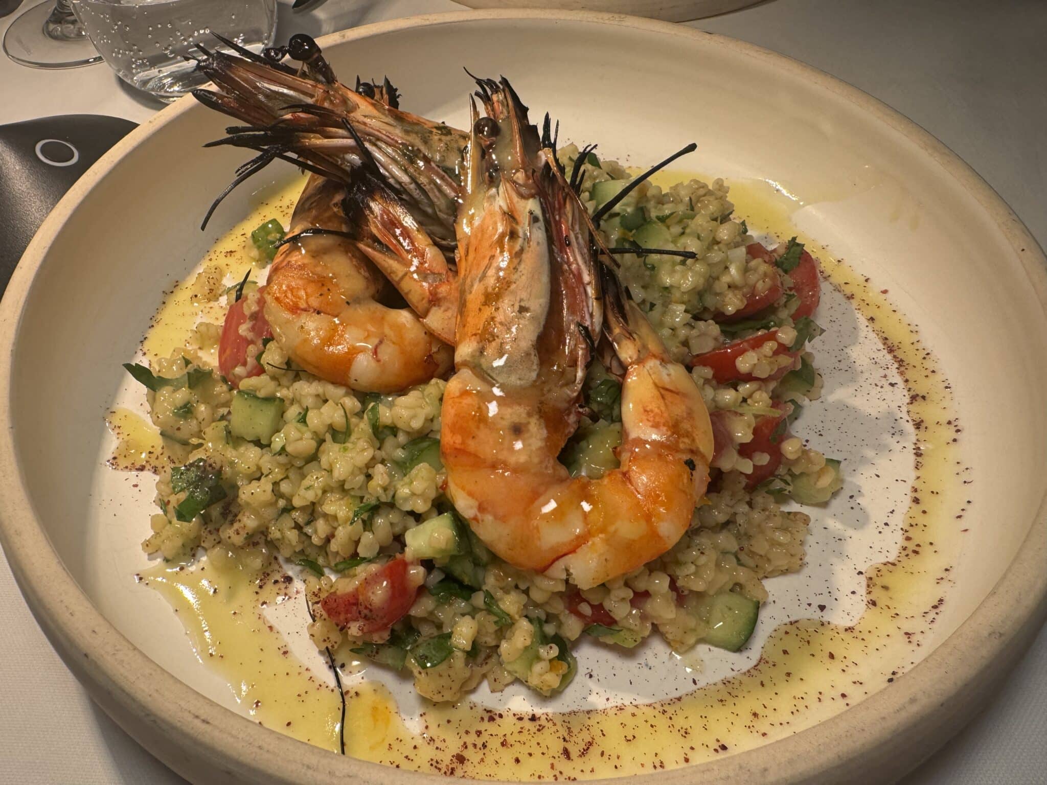 Save space for the restaurant’s “Celebratory Dish”, the Greek lamb shoulder cooked in open wood fire, and watch in awe as it is deboned tableside. You might chuckle at the enormity of the portion – as this scrumptious, succulent, and juicy lamb could easily be enough for four. Greek Syrah perfectly complements the gluttonous and extremely satisfying lamb dish. Add a side of health – like grilled eggplant topped with crunchy kale plated with bed of tahini doused in a pool of olive oil.