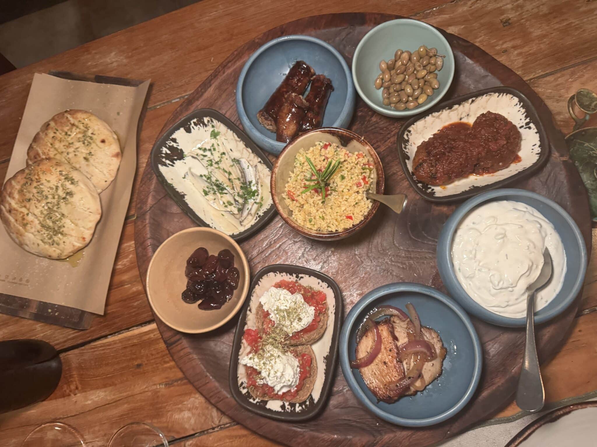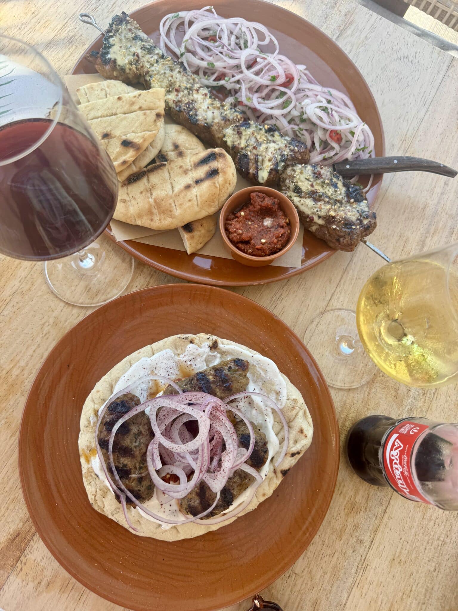 Dinner at Mouries continues over an open flame, with an array of mezze and lamb fit for a Greek god. Here, they also offer an educational wine pairing, with the island’s fruits and cheeses, making a satisfying afternoon sipping the indigenous grape varieties (Plyto, Dafni, Vilana, Mandilari and Kotsifali) that are not sold in the US.