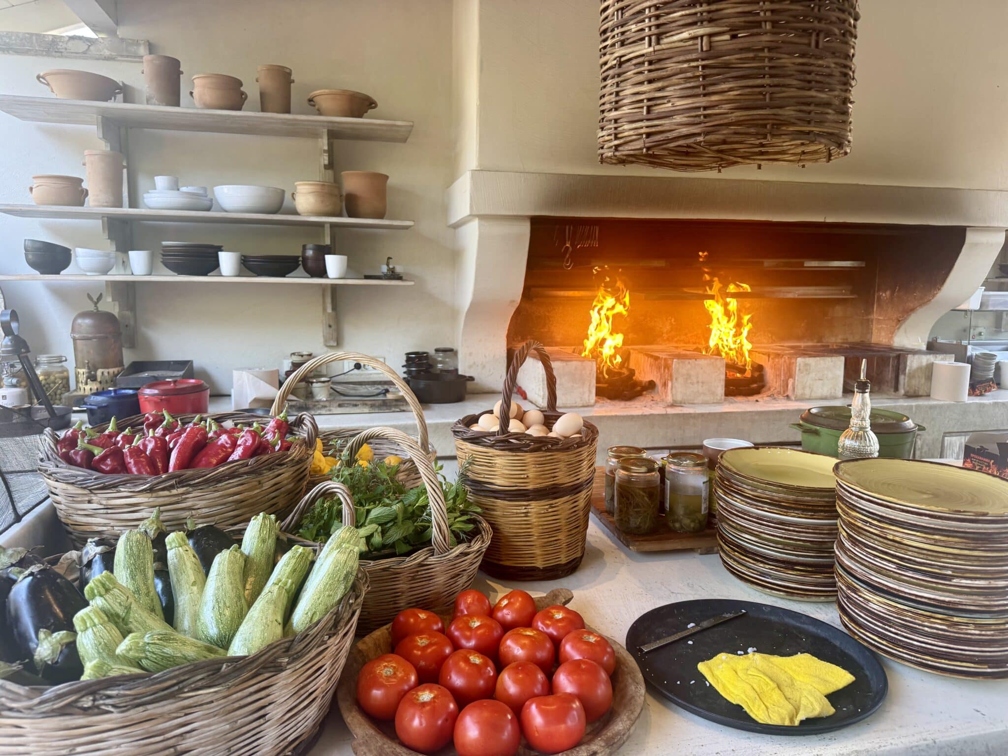 When not relaxing poolside as the golden light shifts from sunrise to sunset, walk into the nearby village of Plaka to explore local shops, or take a cooking class at Blue Door, Phaea’s beachside taverna with more stunning views of Spinalonga Island. In the restored fisherman’s beachfront stone house, learn how to make traditional recipes – like a proper Greek salad with fresh oregano, stuffed and folded dolmas, shrimp saganaki with fiery ouzo, and Dakos soaked in tomato water. The aesthetic is pure coastal Greece, and dinner at Blue Door is the ultimate summer fantasy, as the low key taverna spoils with an array of fresh seafood like lobster pasta, shrimps saganaki in tomato and feta cheese, and wild caught fish of the day in lemon olive oil dressing.