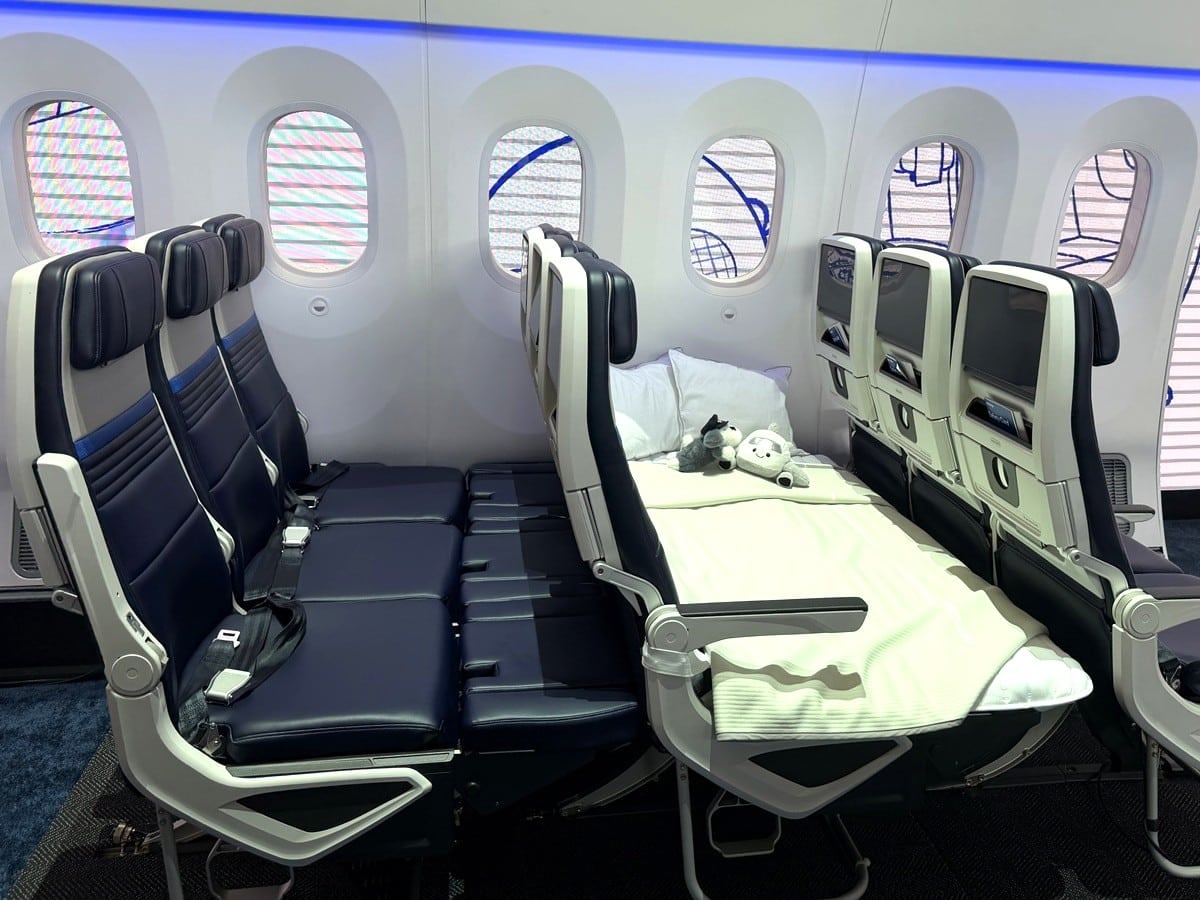 Passengers in Relax Row will also get some nice extras. United is including a custom-fitted mattress pad, a specially sized plush blanket, two additional pillows, and for families, a plush toy plus a Children’s Travel Kit. All of this adds up to a much more comfortable experience than standard Economy, especially on long flights.
